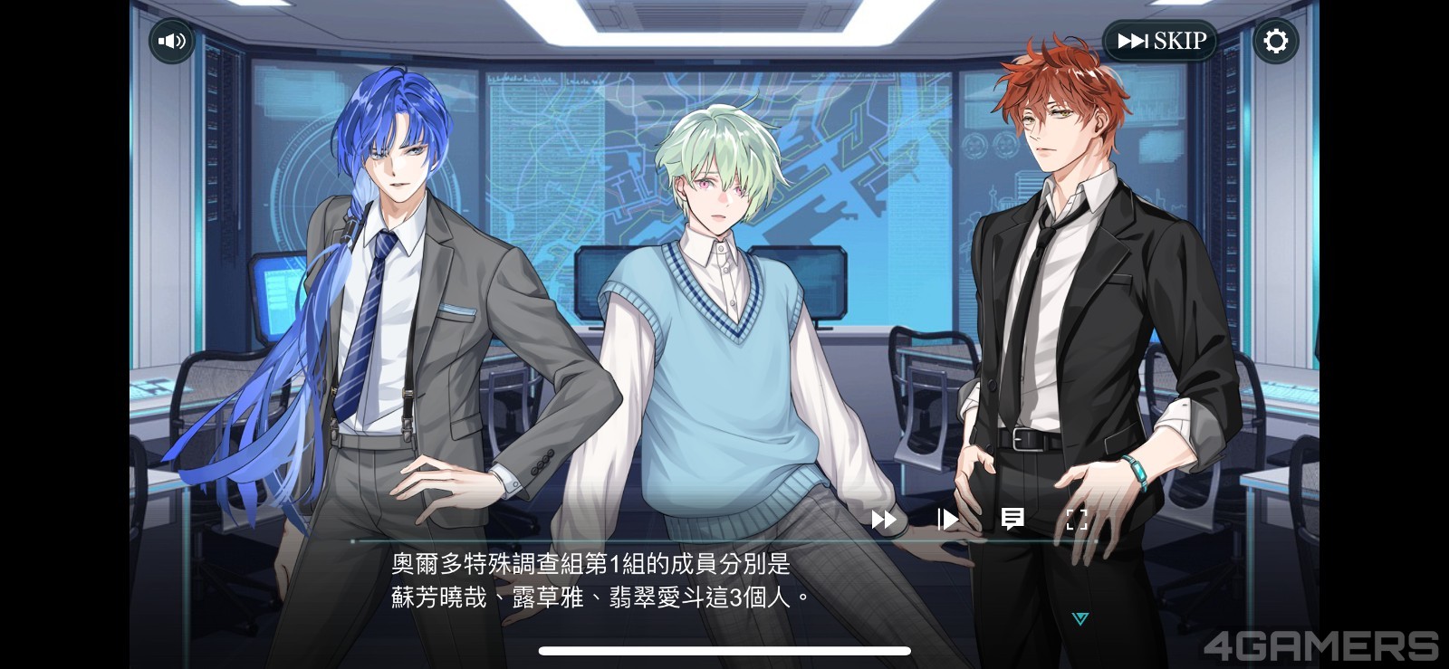 他們在調查組內擔任不同的工作,有智囊、研究員、後勤等等,在主線中也能看到大家一起出任務的劇情,透過這些描寫,你可以更認識隊員們的個性以其他們各自的過去。而最重要的角色攻受,可以在圖說文字中確認囉。