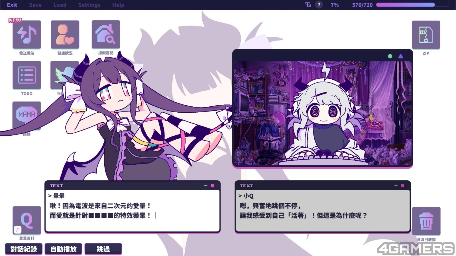 雖然暈暈都會透過螢幕與小 Q 親自互動,但「他」究竟是真實存在,抑或是小 Q 自己的妄想,只能透過玩家的選擇,揭露真正的答案⋯⋯
